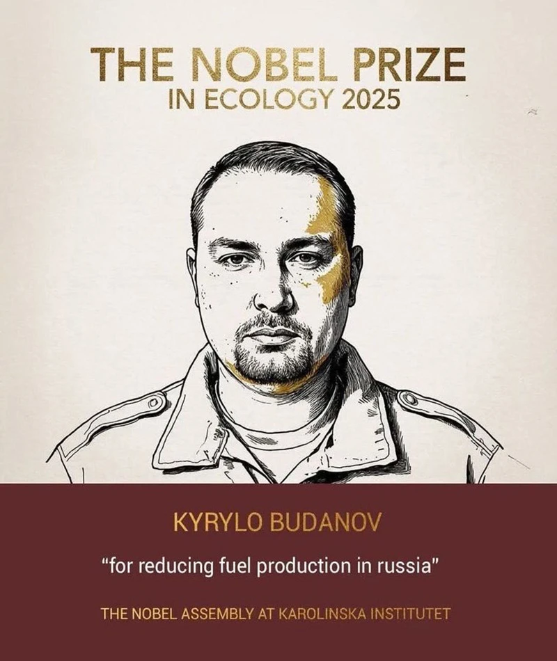 Первым обладателем «экологического Нобеля» стал глава ГУР МО Украины Кирилл Буданов. Официальная формулировка — «за сокращение производства топлива в России».